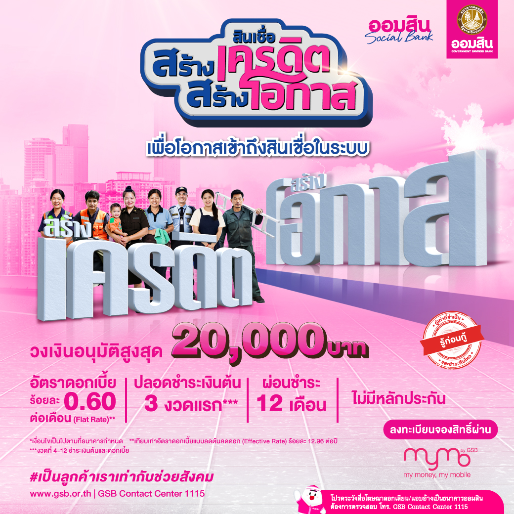 สินเชื่อออมสิน ธนาคารออมสิน สำหรับผู้ที่อยากมีเงินทุนทำอาชีพเสริม สามารถยื่นขอ “สินเชื่อสร้างเครดิต สร้างโอกาส” กู้ได้ผ่านแอปพลิเคชัน MyMo ดอกเบี้ยหมื่นละ 60 บาท/เดือน ให้วงเงินสูงสุด 20,000 บาท โดยกู้เท่าที่จำเป็นและชำระคืนไหว มีรายละเอียดดังนี้