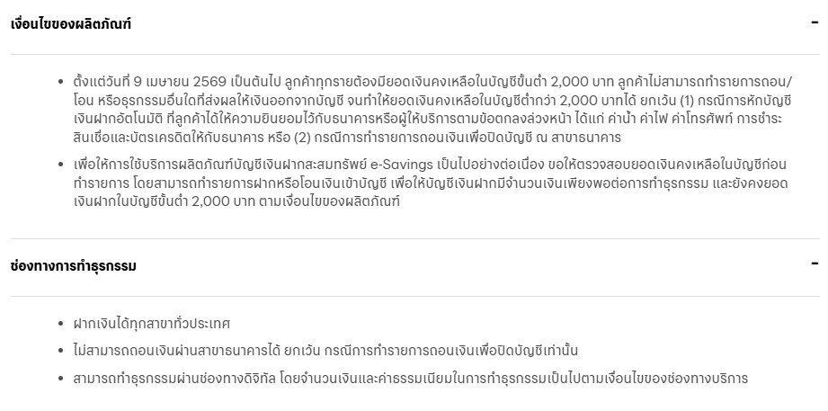 ตั้งแต่วันที่ 9 เมษายน 2569 เป็นต้นไป ลูกค้าทุกรายต้องมียอดเงินคงเหลือในบัญชีขั้นต่ำ 2,000 บาท ลูกค้าไม่สามารถทำรายการถอน/โอน หรือธุรกรรมอื่นใดที่ส่งผลให้เงินออกจากบัญชี จนทำให้ยอดเงินคงเหลือในบัญชีต่ำกว่า 2,000 บาทได้ ยกเว้น (1)