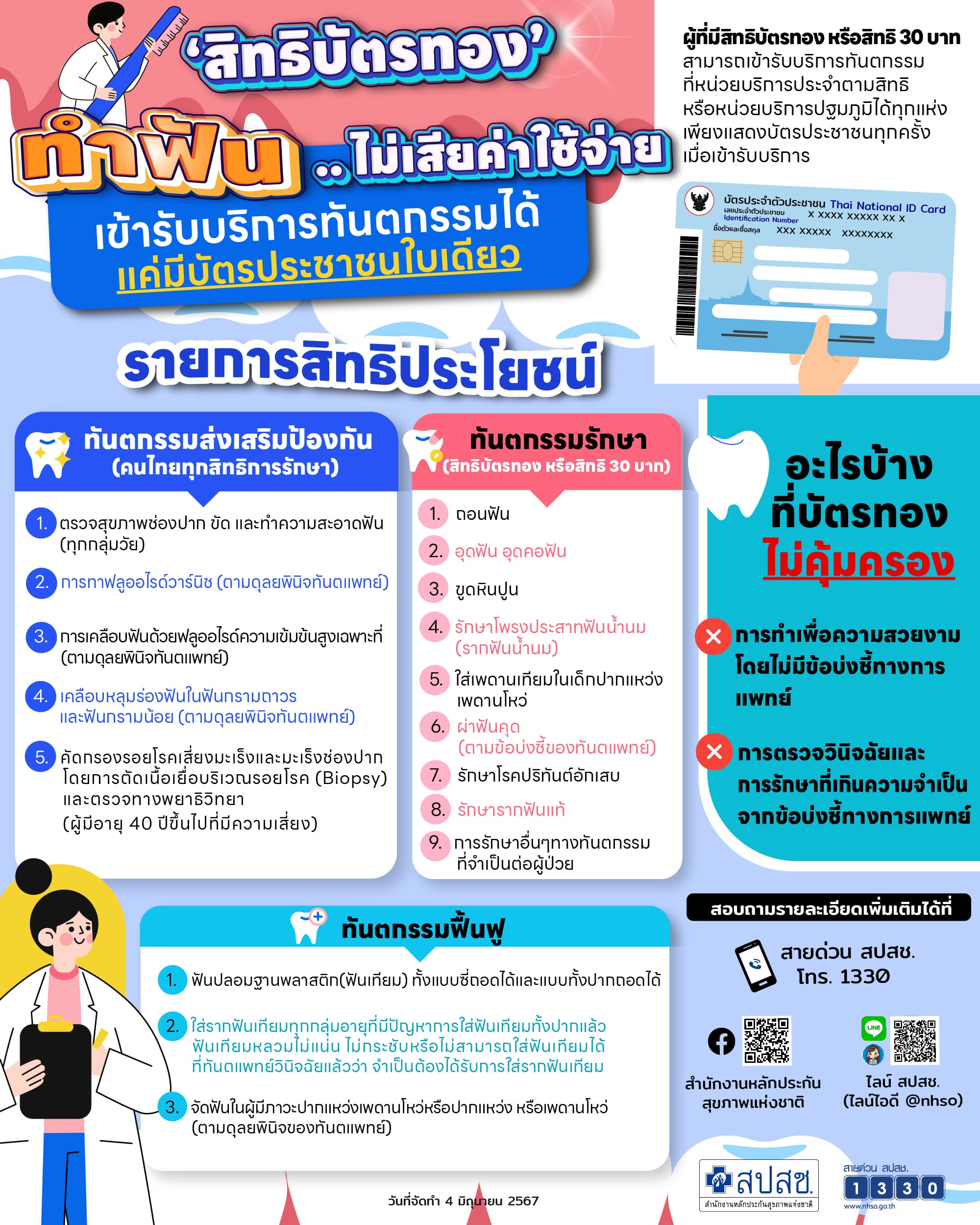 สิทธิประโยชน์ทันตกรรมในระบบหลักประกันสุขภาพแห่งชาติ (สิทธิบัตรทอง หรือ 30 บาทรักษาทุกโรค) มีดังนี้