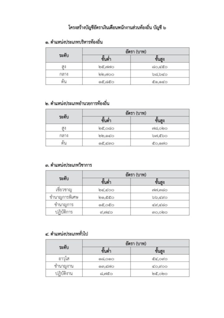 โครงสร้างบัญชีอัตราเงินเดือนพนักงานส่วนท้องถิ่น บัญชี 6