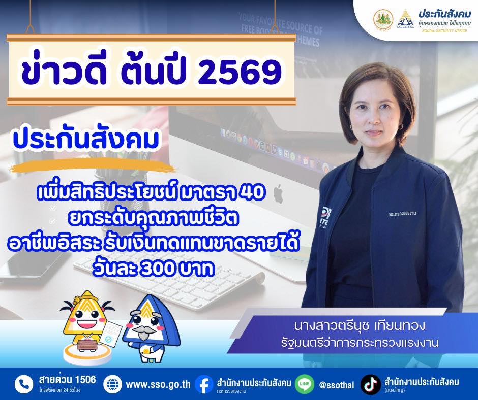 รัฐมนตรีว่าการกระทรวงแรงงาน เปิดเผยว่า กระทรวงแรงงานได้ผลักดันให้มีการปรับปรุงสิทธิประโยชน์ของผู้ประกันตนตามมาตรา 40 อย่างต่อเนื่อง โดยล่าสุดได้มีการประกาศใช้ พระราชกฤษฎีกากำหนดหลักเกณฑ์และอัตราการจ่ายเงินสมทบประเภทของประโยชน์ทดแทน ตลอดจนหลักเกณฑ์และเงื่อนไขแห่งสิทธิในการรับประโยชน์ทดแทนของบุคคลซึ่งสมัครเป็นผู้ประกันตน (ฉบับที่ 5) พ.ศ. 2568 ซึ่งประกาศในราชกิจจานุเบกษาเมื่อวันที่ 31 ธันวาคม 2568 และมีผลบังคับใช้ตั้งแต่วันถัดจากวันประกาศเป็นต้นไป ถือเป็นข่าวดีสำหรับผู้ประกันตนอาชีพอิสระทั่วประเทศ เนื่องจากมีการปรับเพิ่มสิทธิประโยชน์ให้ครอบคลุมและสอดคล้องกับค่าครองชีพในปัจจุบันมากยิ่งขึ้น
