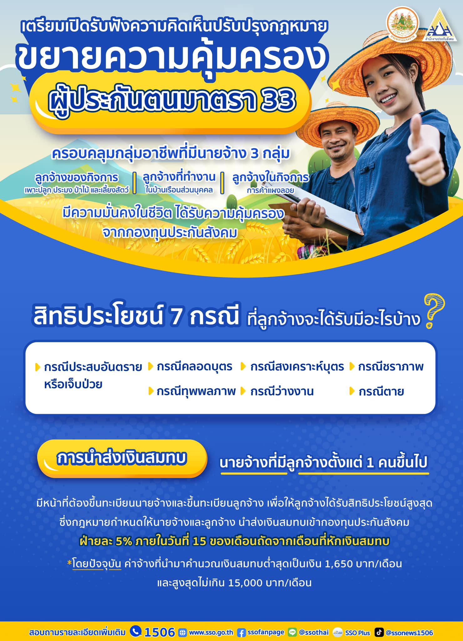 ประกันสังคมแจ้ง!! ผู้ประกันตน ม. 33 ขยายความคุ้มครอง กว่า 10 อาชีพ กลุ่มไหนบ้าง ดูได้ที่นี่