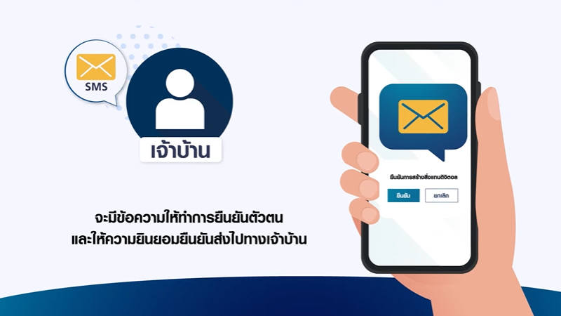 5. จากนั้นจะมีข้อความ (SMS) ให้ทำการยืนยันตัวตนและให้ความยินยอมยืนยันส่งไปที่เจ้าบ้าน