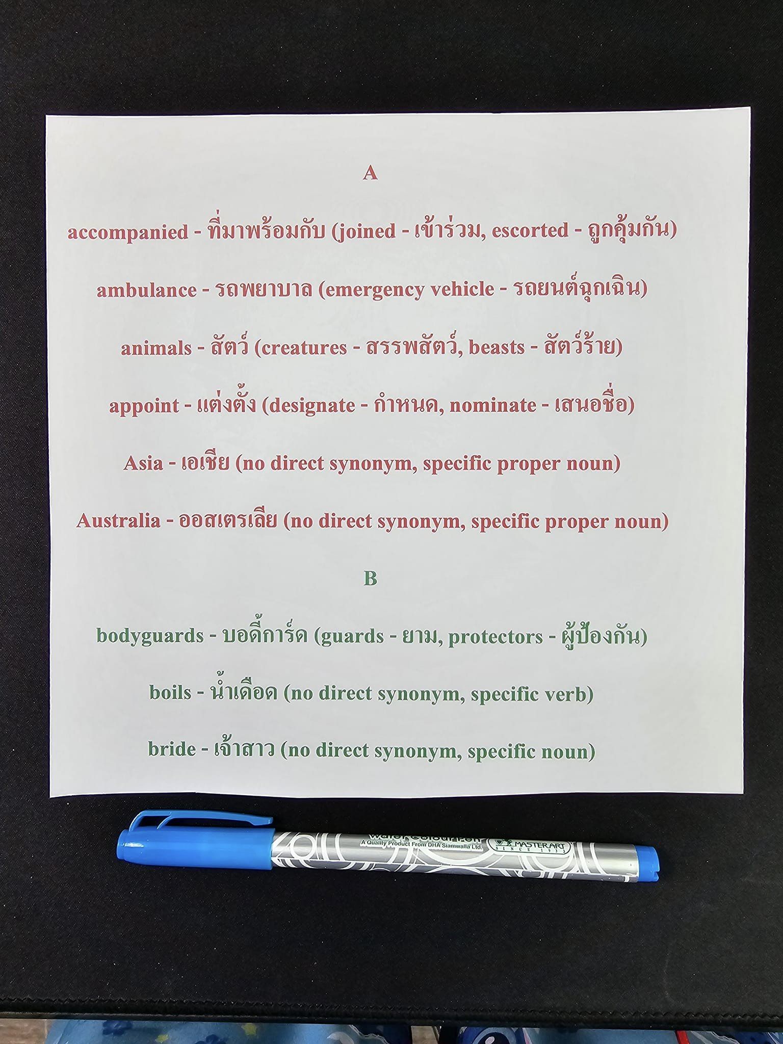 - Australia – ออสเตรเลีย (no direct synonym, specific proper noun)