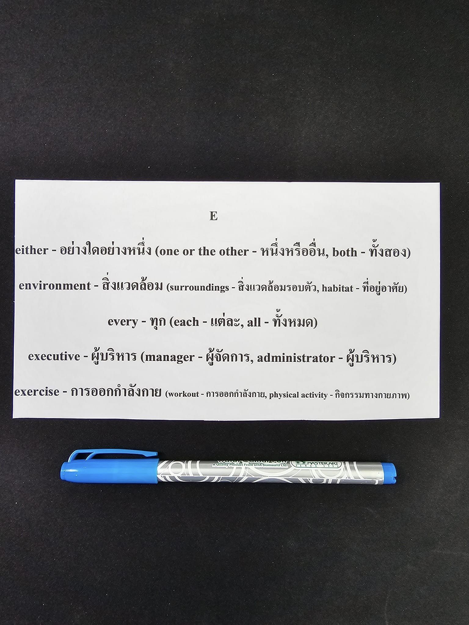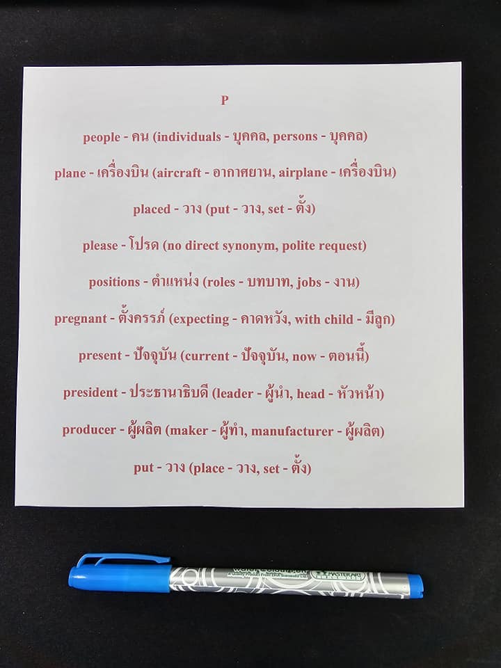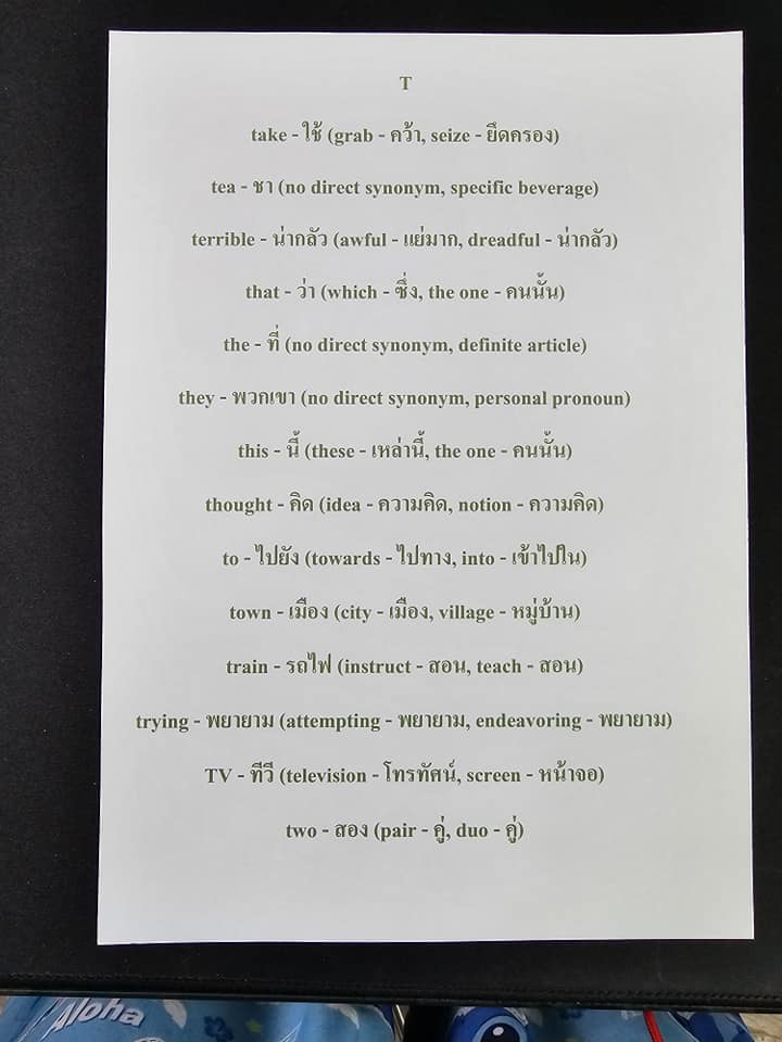 - notebook – สมุดบันทึก (notepad – สมุดโน้ต, journal – สมุดบันทึก)