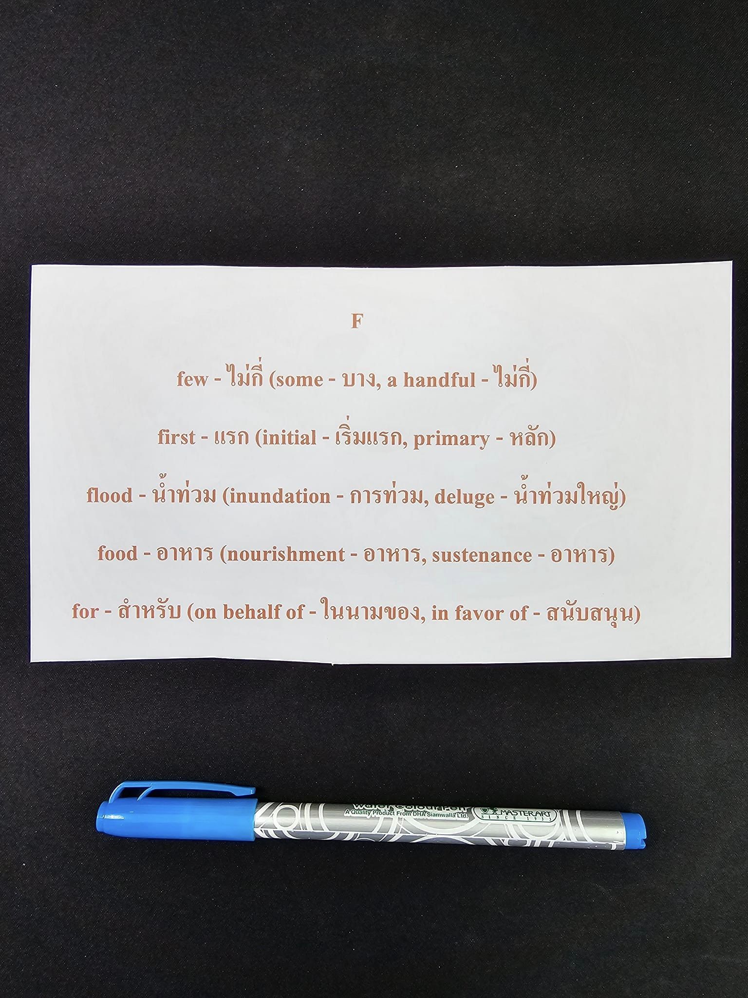 - for – สำหรับ (on behalf of – ในนามของ, in favor of – สนับสนุน)