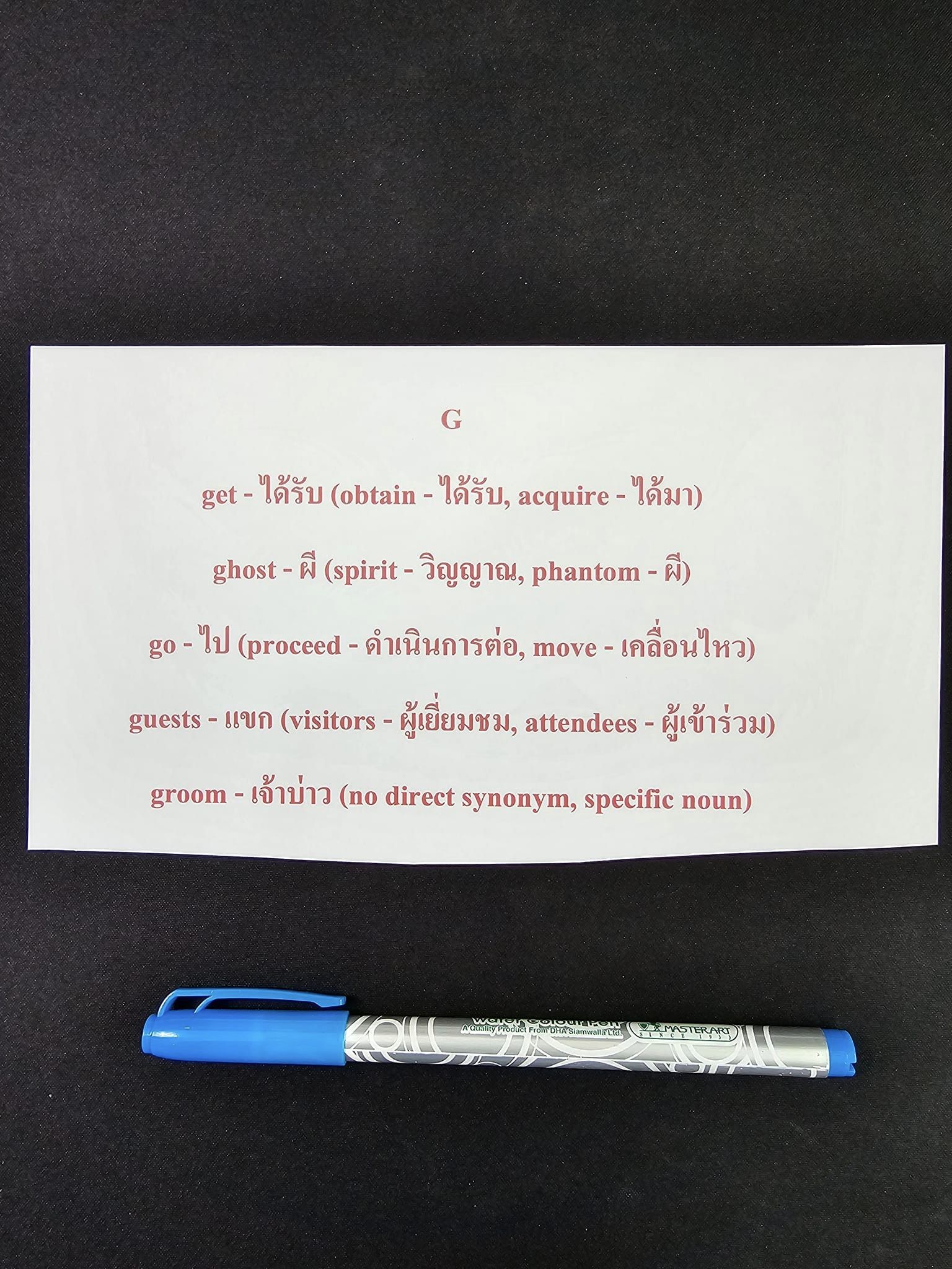 - คำในวงเล็บ คือ synonyms (คำที่ความหมายคล้ายกัน)