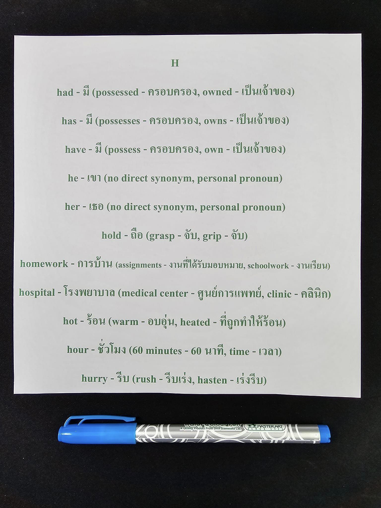 - homework – การบ้าน (assignments – งานที่ได้รับมอบหมาย, schoolwork – งานเรียน)